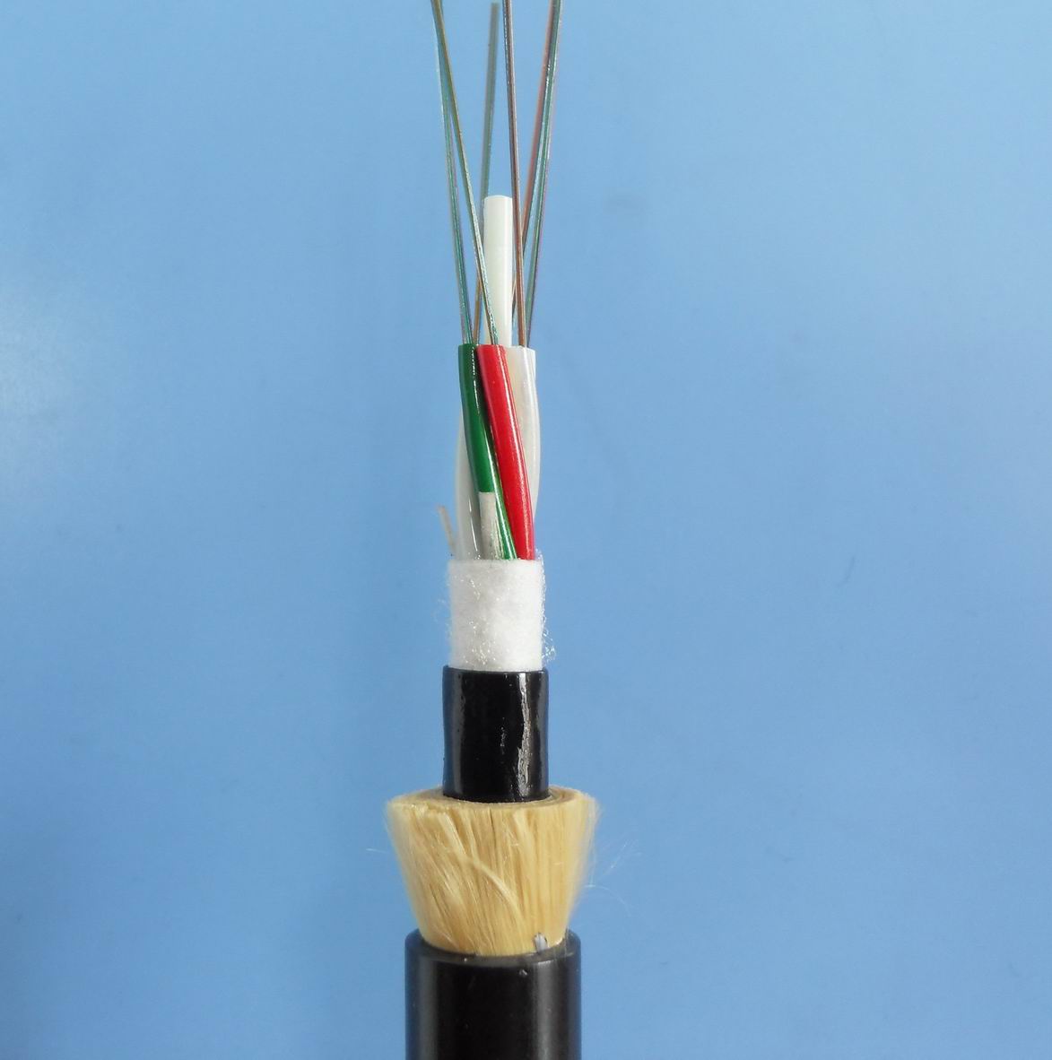 普通光纜的國家標準明確規定了不同使用方式(如架空、管道、直埋等)的光纜應具有的機械強度。而ADSS光纜是自承式架空光纜,所以它除了必須承受自身重力的長期作用外,還必須能經受住自然環境的洗禮。如果ADSS光纜機械性能設計不合理、與當地天氣不相適應,則光纜就會存在安全隱患,壽命就會打折扣。因此,每個ADSS光纜工程都必須根據光纜路由所處的自然環境和跨距ADSS的架設檔距可達到1800米/擋,耐壓高、抗電蝕性能好、防雷擊,可以在500kV電壓等級的輸電線路桿塔上敷設,并具有很強的抗彈擊性能,一般的砂槍在10米以外的距離射擊不會對光纜造成故障性傷害。還具有很強的耐低溫性能和環境適應性。光纜不依賴于輸電線而獨立敷設,施工和維護都比較方便,而且不需要停電作業,光纜也比較便宜。ADSS--300M-PE-36B1ADSS光纜設計為束管層絞結構,主要為6管層絞和8管層絞。
