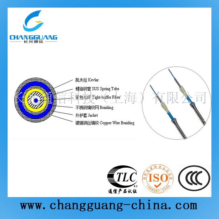防靜電型鎧裝光纜是在螺旋鋼管鎧裝型光纜的基礎上在護套外加一層導靜電作用的銅鍍鎳編織網,并且改用耐化學腐蝕塑膠做護套,使光纜可以在強化學環境中長期使用,是石化領域傳感專用的光纜。