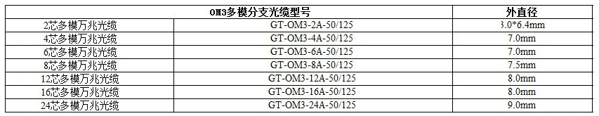 纖芯直徑:50±2.5um,包層直徑:125±1.0um,支持骨干網建設