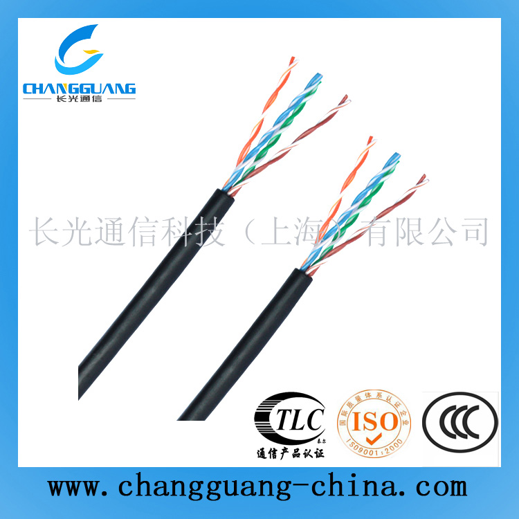 1、超五類非屏蔽室外雙絞線采用4對芯徑為24AWG單股裸銅線,外包阻水帶,外被為PE聚酯薄膜及耐氣候黑色聚乙烯護(hù)套;